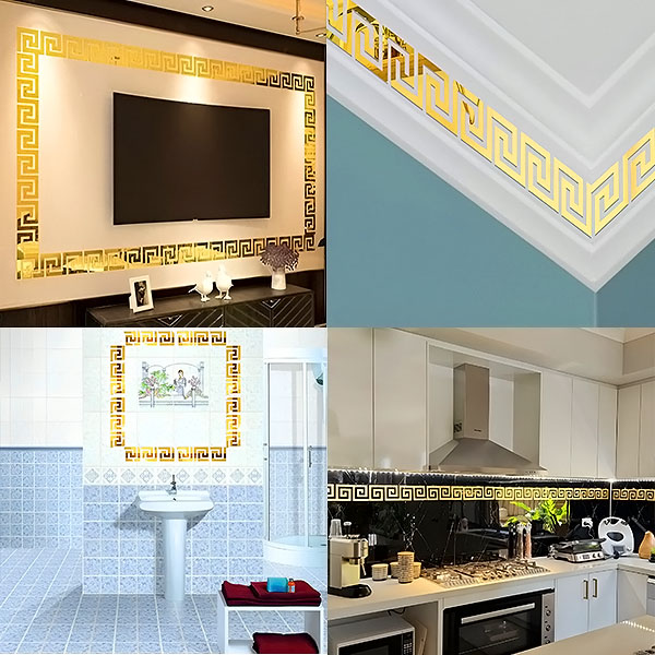 Обновяване на банята: Освежете интериора на банята, като поставите стикерите по стените или около огледалата – те отразяват светлината и създават усещане за повече пространство и лукс.