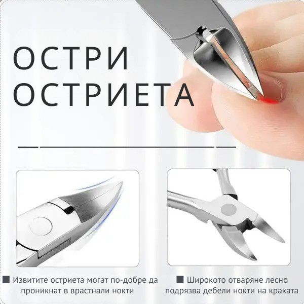 Специално проектирани за удебелени и врастнали нокти, инструментите в този комплект осигуряват необходимата сила и прецизност за трудна грижа за ноктите без дискомфорт или риск от нараняване.